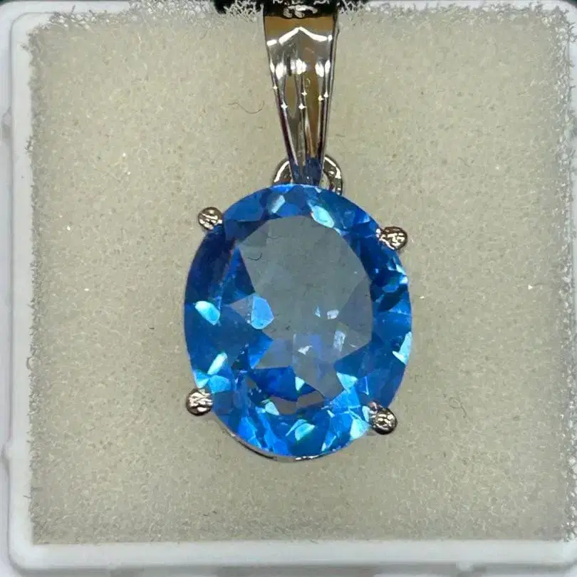 스위스 블루 토파즈 오벌 컷 펜던트 실버
