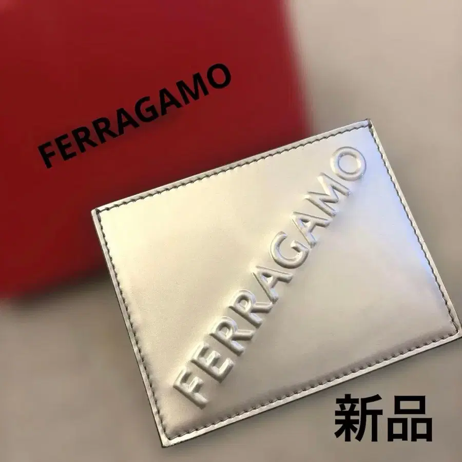 페라가모 카드 케이스 명함지갑 실버 메탈릭 미사용 새상품