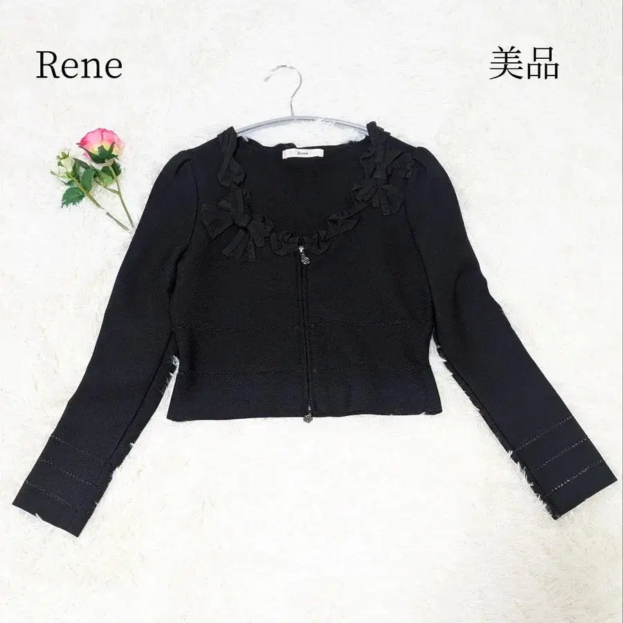 새상품급 르네 까멜리아 더블 지퍼 가디건 노카라 자켓 리본