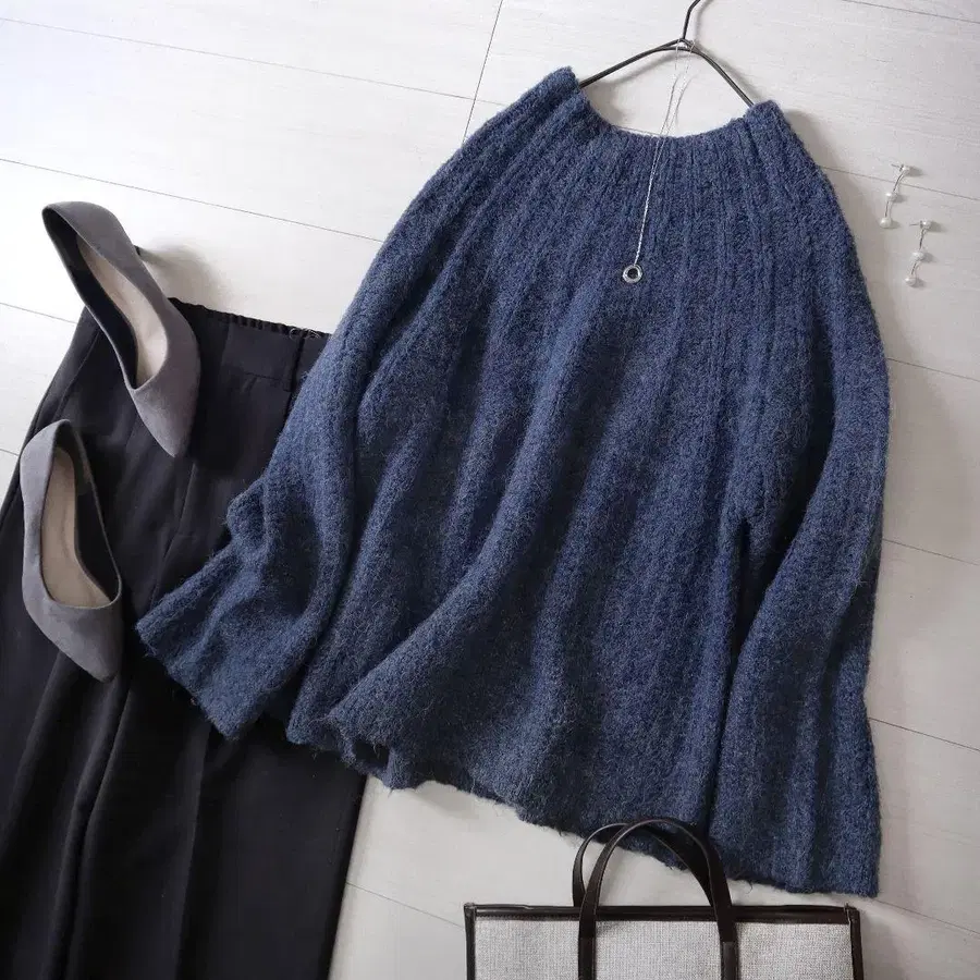 ◎ 어반 리서치의 포근하고 고급스러운 하이넥 모헤어 니트 풀오버입니다. 색상은 톤 다운된 로얄 블루입니다.