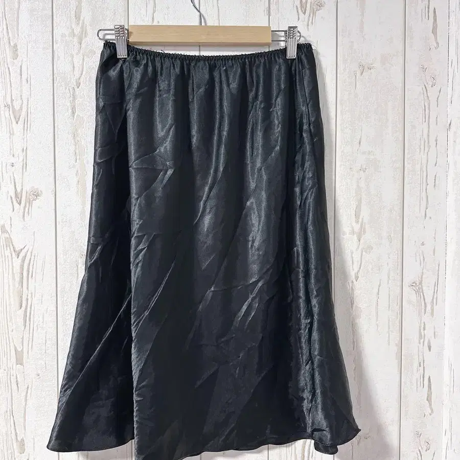 자동 번역되었어요. 원문보기새틴 소재의 플레어 롱 스커트, 블랙 컬러로 엘레강트한 인상.
