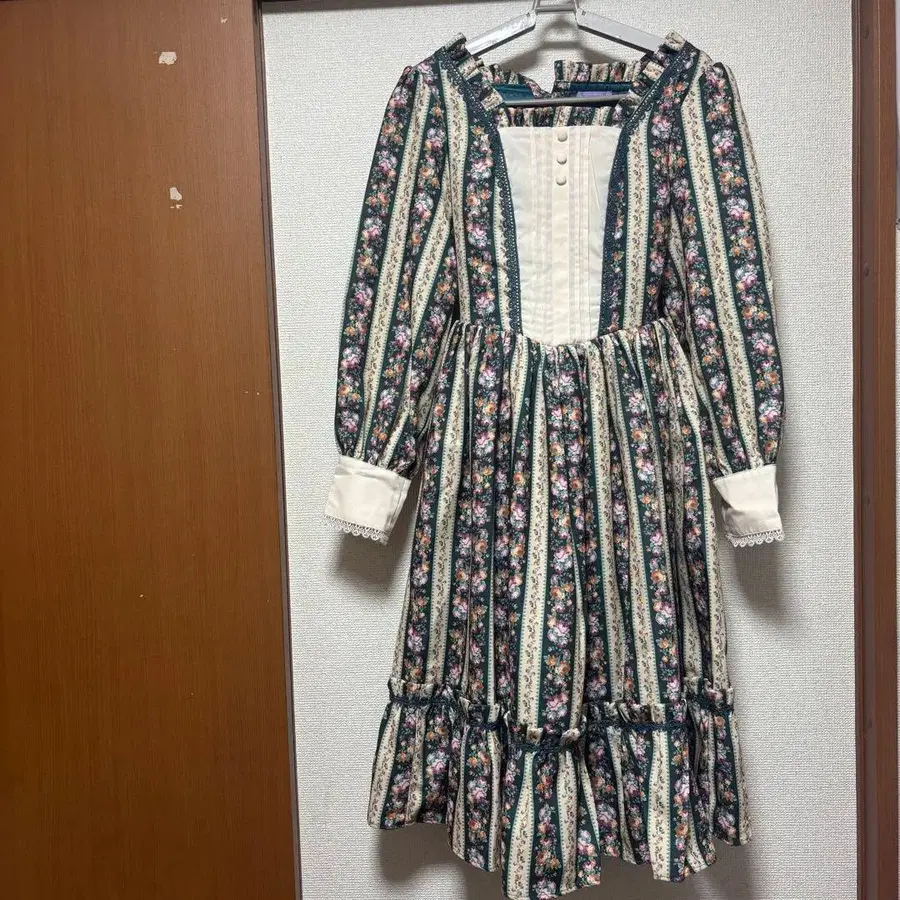 axes femme kawaii 스트라이프 로즈 패턴 원피스 그린