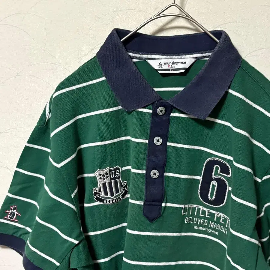 먼싱웨어 아르라인 반팔 피케 셔츠 골프 보더 무늬 남성용 LL