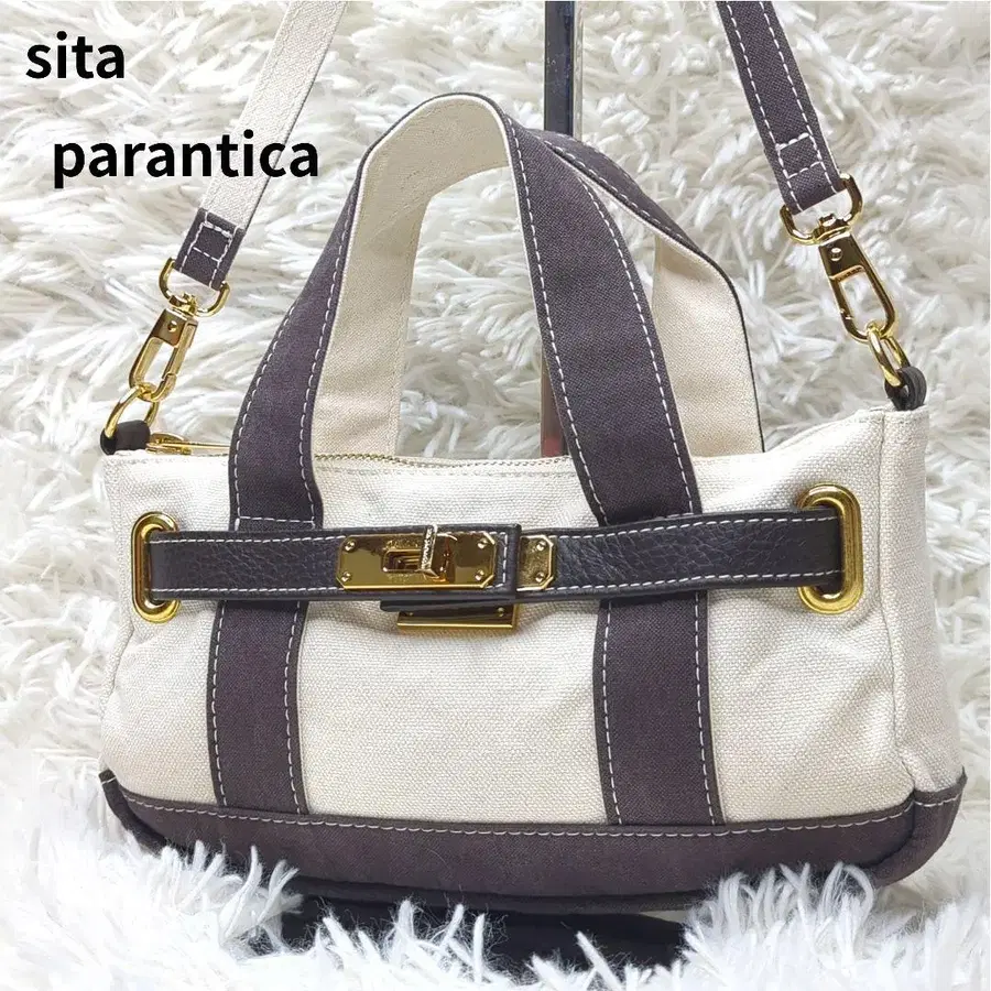 sita parantica 시타 파란티카 가방 핸드백 숄더백 크로스바디 토트 토트 어깨걸이 어깨걸이 어깨걸이 사선걸이 캔버스 가죽 천연 가죽 아이보리 화이트 화이트 브라운 브라운 라이트 브라운 2way 턴락 골드 금장 장식 벨트 스티치