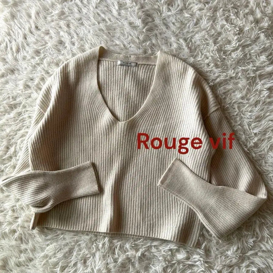 루즈비프 V넥 숏 니트 아이보리 프리 사이즈