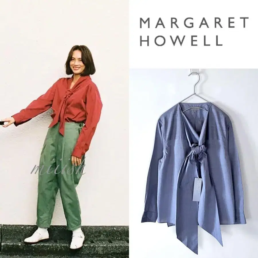 새상품 마가렛호웰 코튼 샴브레이 리본 타이 셔츠 3.7만