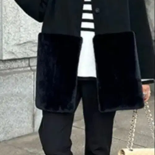 AMELY 퍼 부착 노카라 자켓 블랙