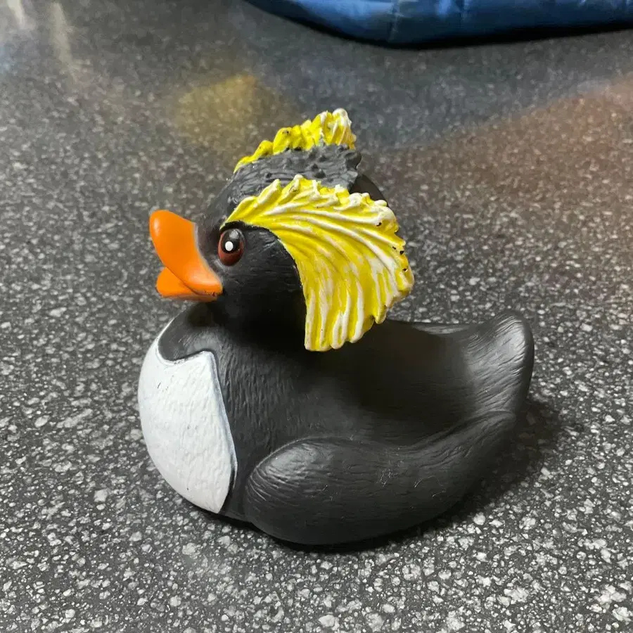 유니크한 디자인의 오리 모양 캐릭터 완구. - 색상: 블랙과 화이트 바디, 옐로우 컬러 깃털 - 디자인: 오리 캐릭터 - 소재: 플라스틱제 - 특징: 유니크한 깃털 디자인 - 사이즈: 손바닥 사이즈 방문해 주셔서 감사합니다.