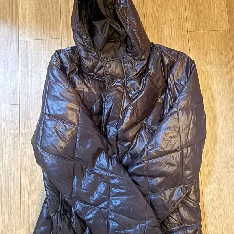 브라운 퀼팅 다운 자켓 후드 부착