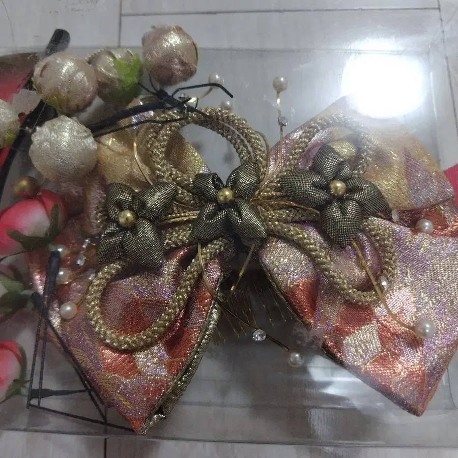 일본 의류용 머리 장식 골드 컬러와 핑크