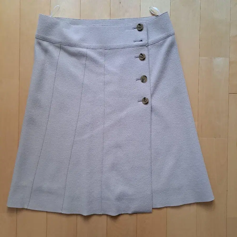 라이트 그레이 플레어 스커트 무릎 기장 4 버튼