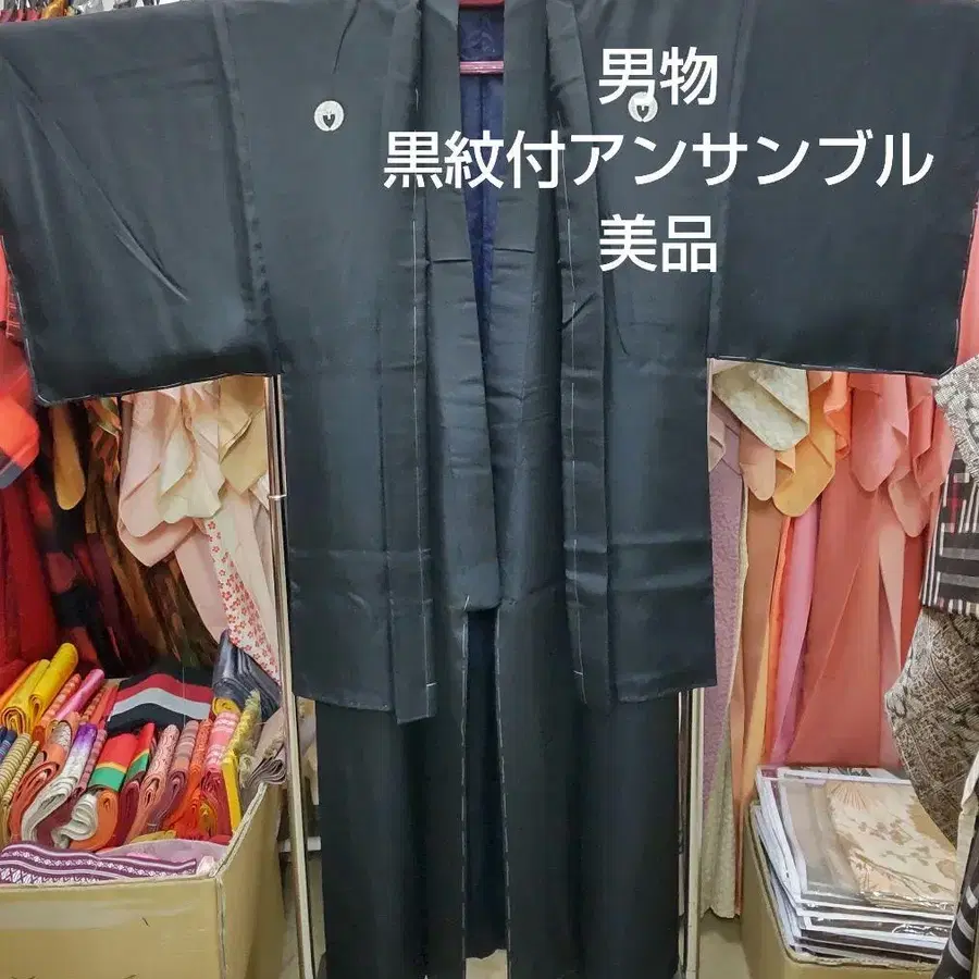남자 블랙 문장 기모노 앙상블