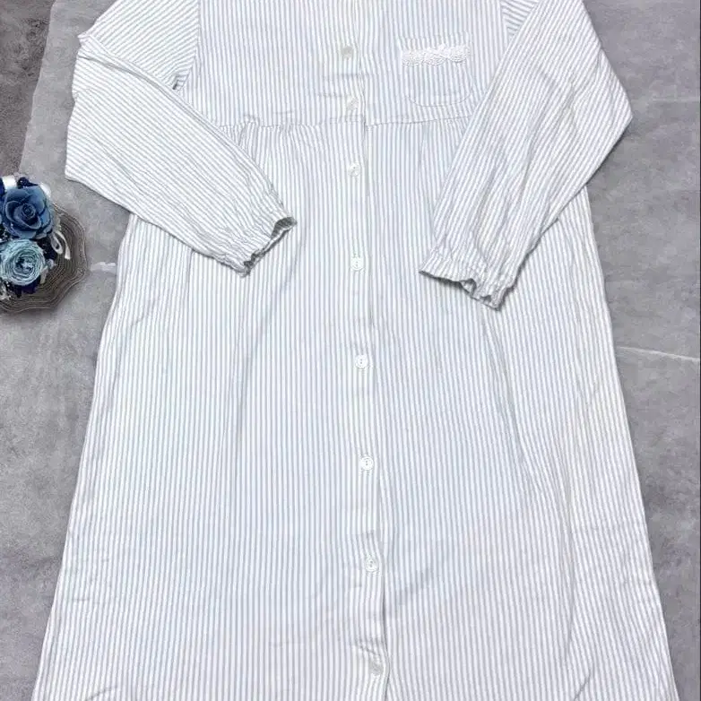 새상품 나르에 원피스 엘레강트 파자마 M~L 그레이 스트라이프 리본