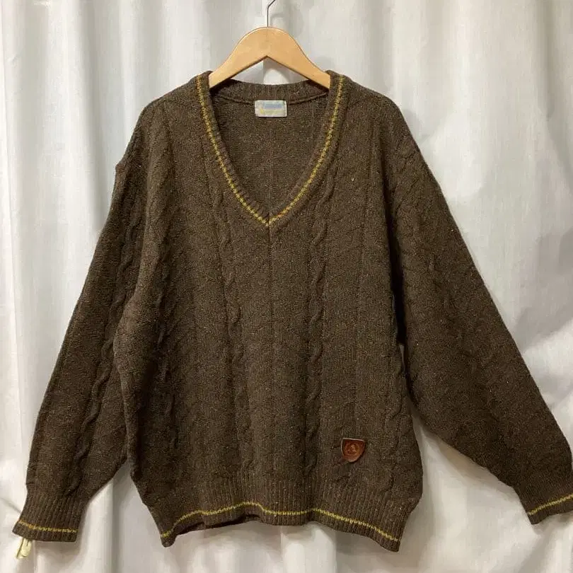 니트 스웨터 브이넥 황토색 레트로 빈티지 개성파 기하학 패턴 L