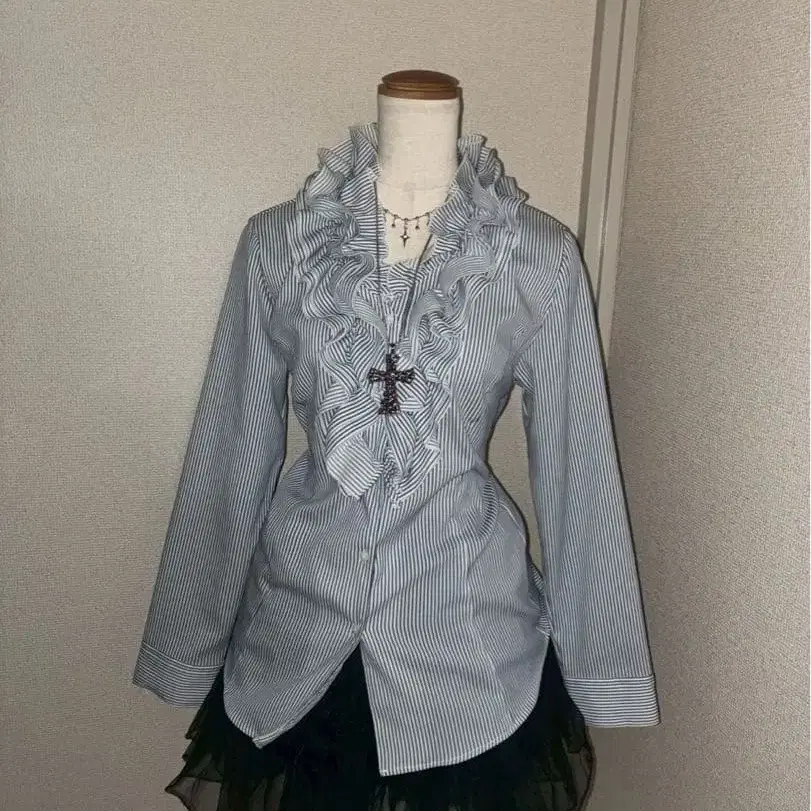 y2k 스트라이프 셔츠 프릴 헤이세이 갸루 고딕 페어리 그런지
