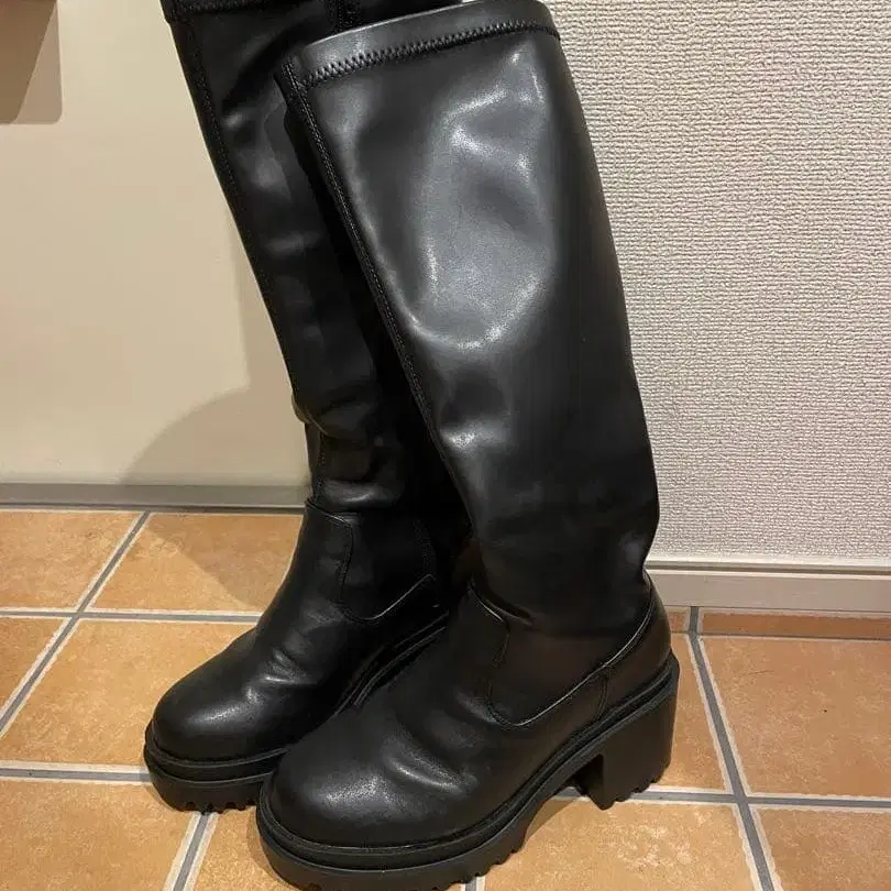 롱부츠 블랙 S사이즈 통굽 청키힐 지퍼 포함