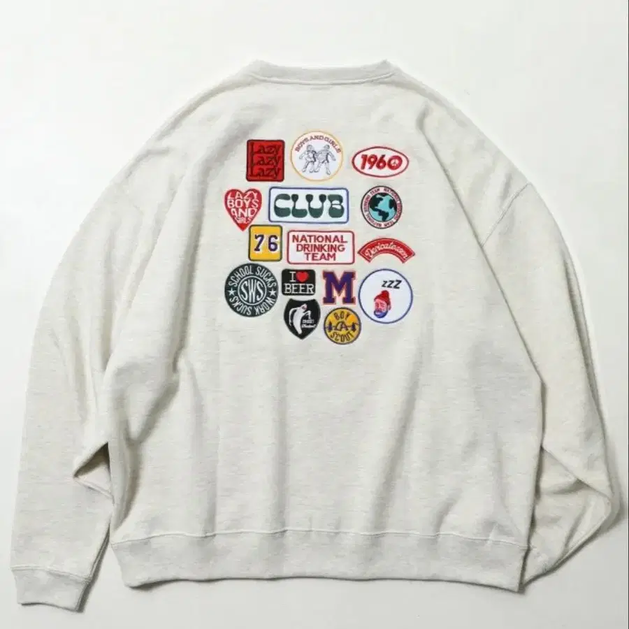 WEB 한정판 빅 실루엣 백 자수 랜덤 와펜 디자인 크루넥 맨투맨