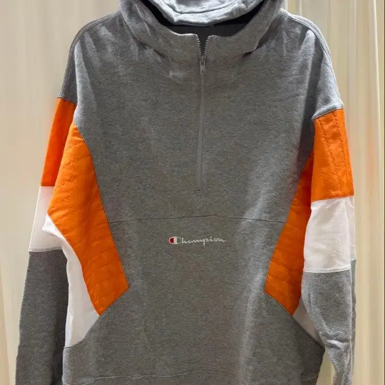 챔피온 하프 지퍼 후드티 그레이 x 오렌지 사이즈 M
