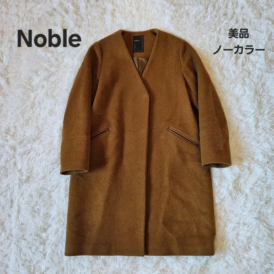 [ Noble ] 새상품급 노카라 롱 코트 울 브라운 프리 사이즈