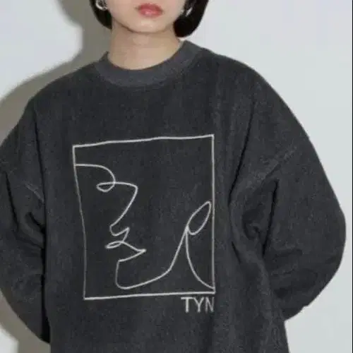 THE YO 아트 자수 브러쉬드 저지 풀오버