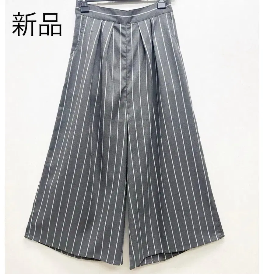 새상품 와이드 팬츠 가우초 팬츠 그레이 스트라이프