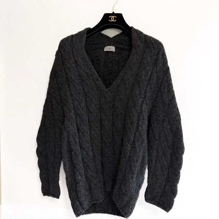 IENA 울 로게이지 V넥 풀오버 케이블 니트