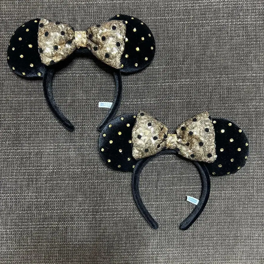 디즈니 머리띠 2개 블랙 골드 리본 도트 스톤