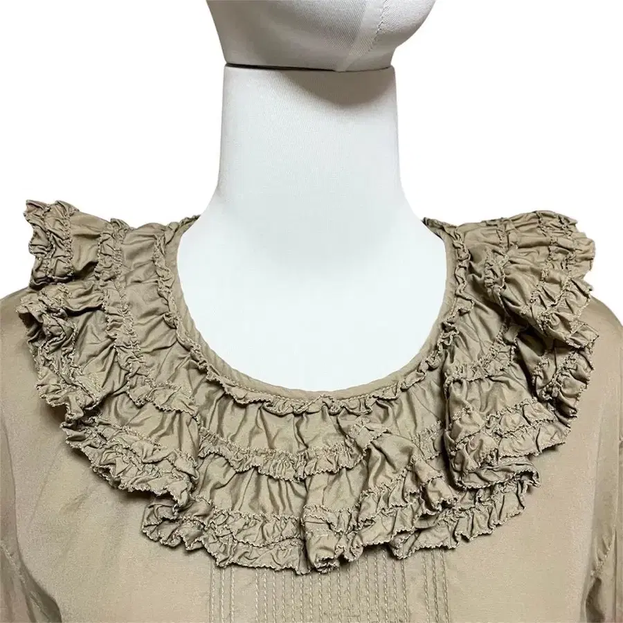 소매에도 피코 프릴과 핀턱으로, 버튼은 싸개 버튼으로 되어 있습니다.