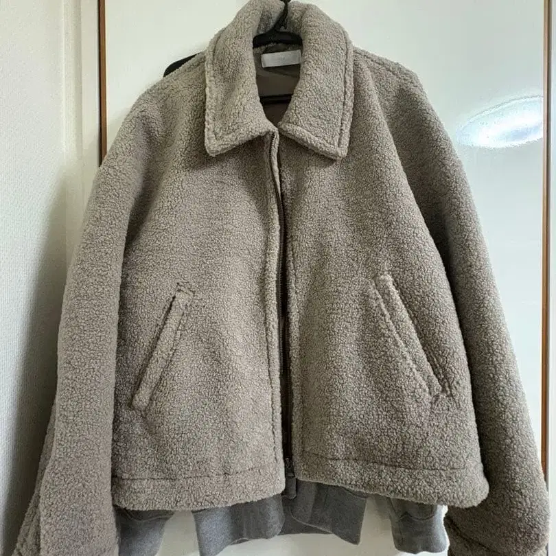 WYM LIDNM 베이지 플리스 자켓 숏 기장 블루종 보아