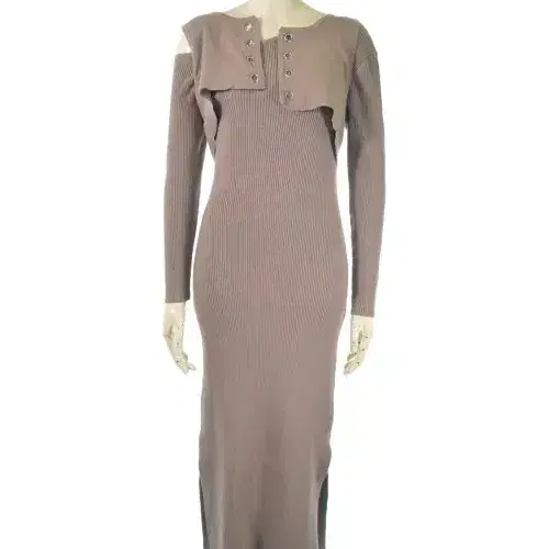[ 실측치수(cm) ] 가슴 너비: 33cm, 화장: 66cm, 슬릿: 28.5cm, 어깨에서 총길이: 115.5cm