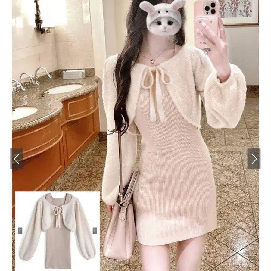 리본 샤기 볼레로 미니 원피스 니트 셋업 [ru1383]