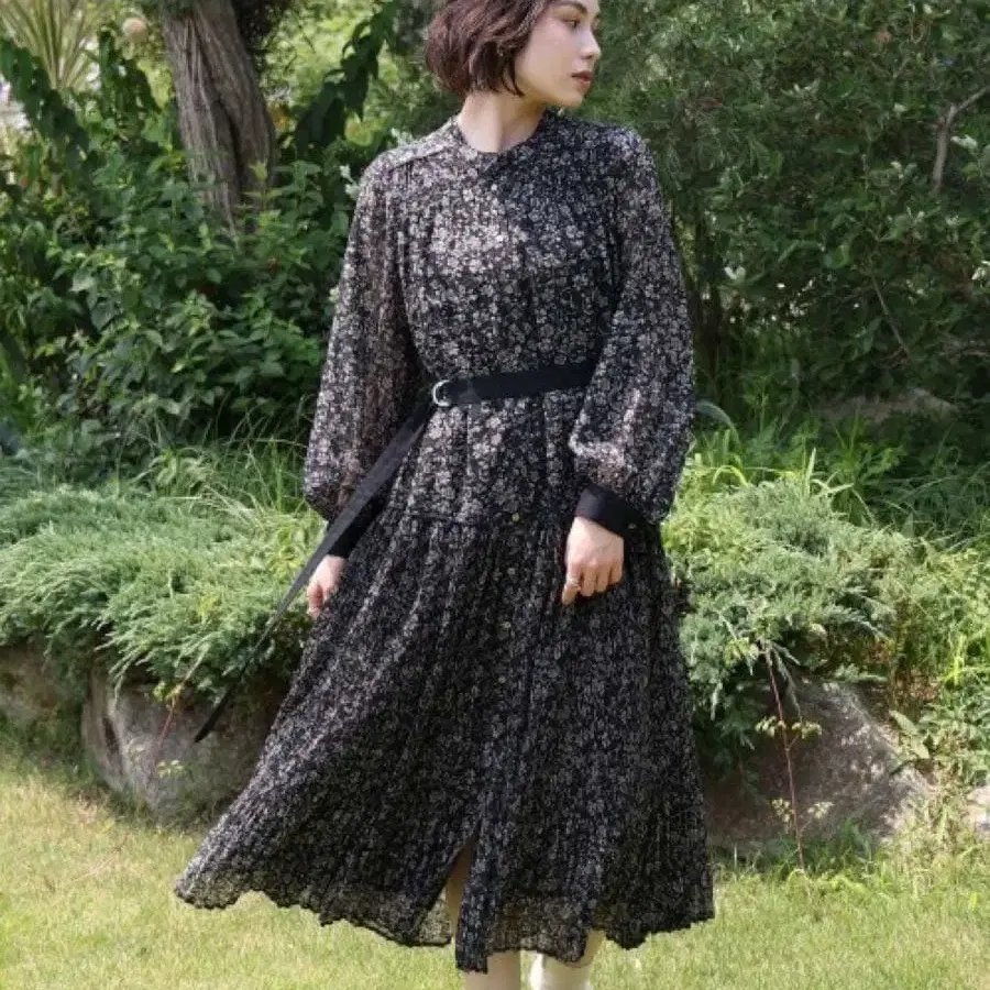 플라워 플리츠 원피스