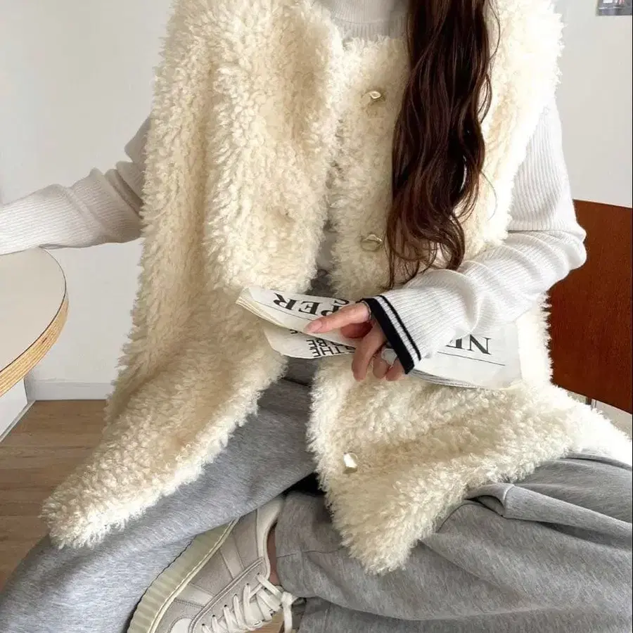 • 미사용 새상품 가볍고 복슬복슬 귀여운 퍼 베스트 아이보리