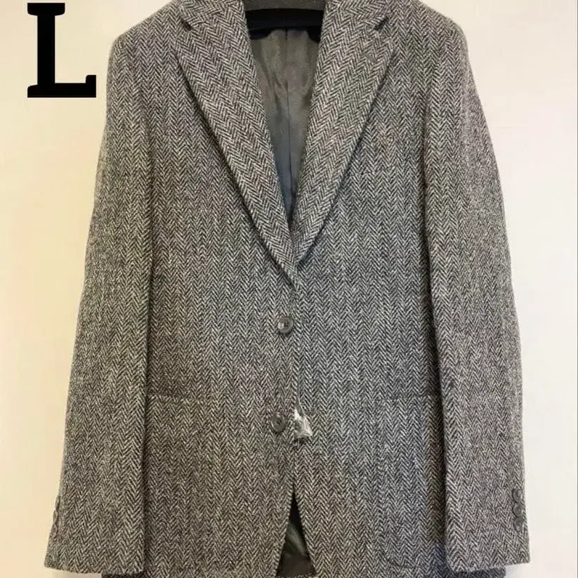 해리스 트위드 테일러드 자켓 올 패턴 헤링본 L 차콜 그레이