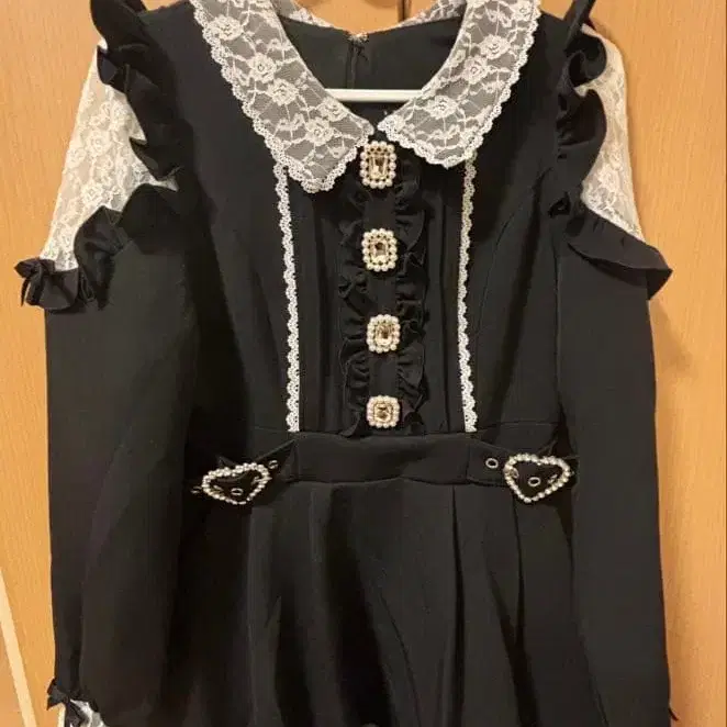 DearMyLove 반짝이는 비쥬 레이스 겹침 프릴 원피스