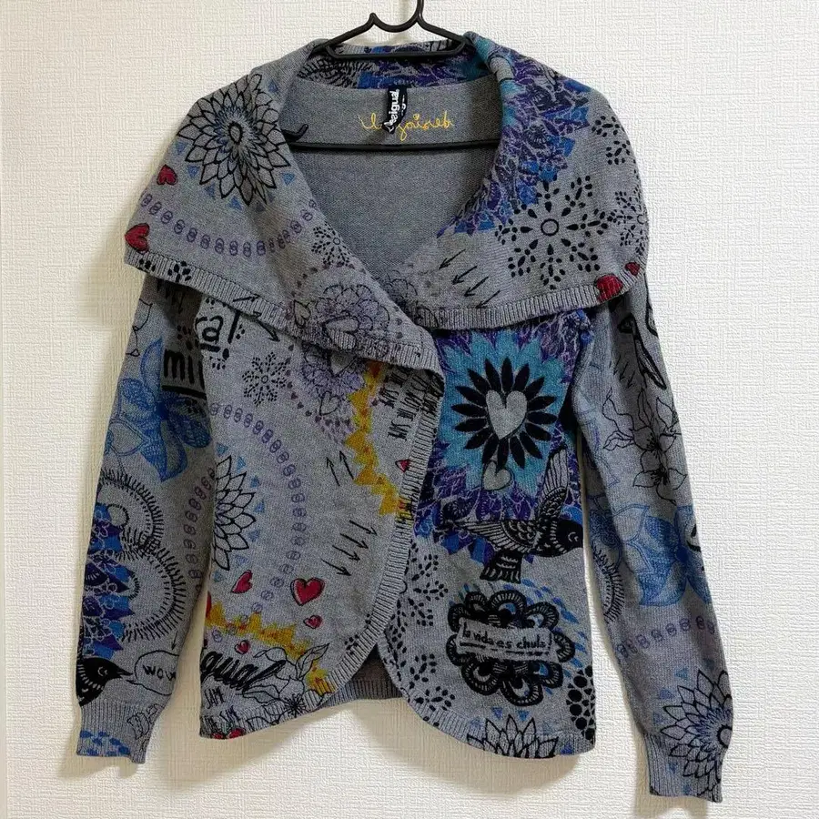 데시구알 가디건 손글씨풍 겉옷 상의 올 패턴 코튼 니트