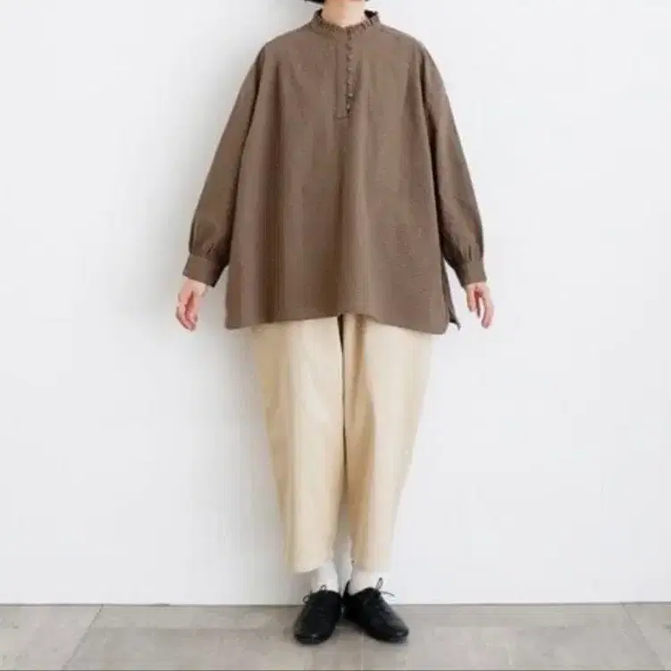 늑대와 올빼미 체크 무늬 스탠드 카라 긴팔 셔츠