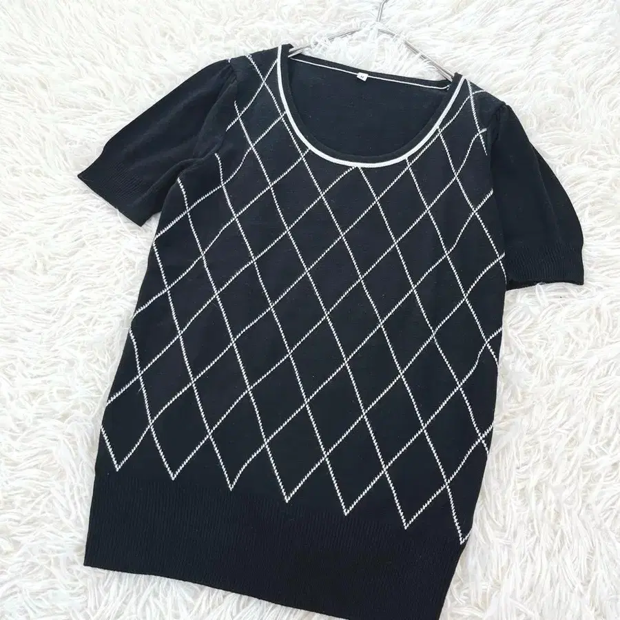 DHC 아가일 무늬 반팔 니트 썸머 니트 블랙 화이트 고급