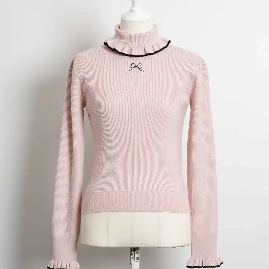 pium 리본 자수 프릴 터틀 니트 핑크