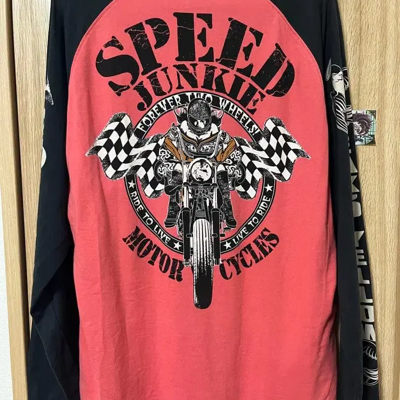 00s y2k 바이커 래글런 긴팔 티셔츠 영문 올 패턴