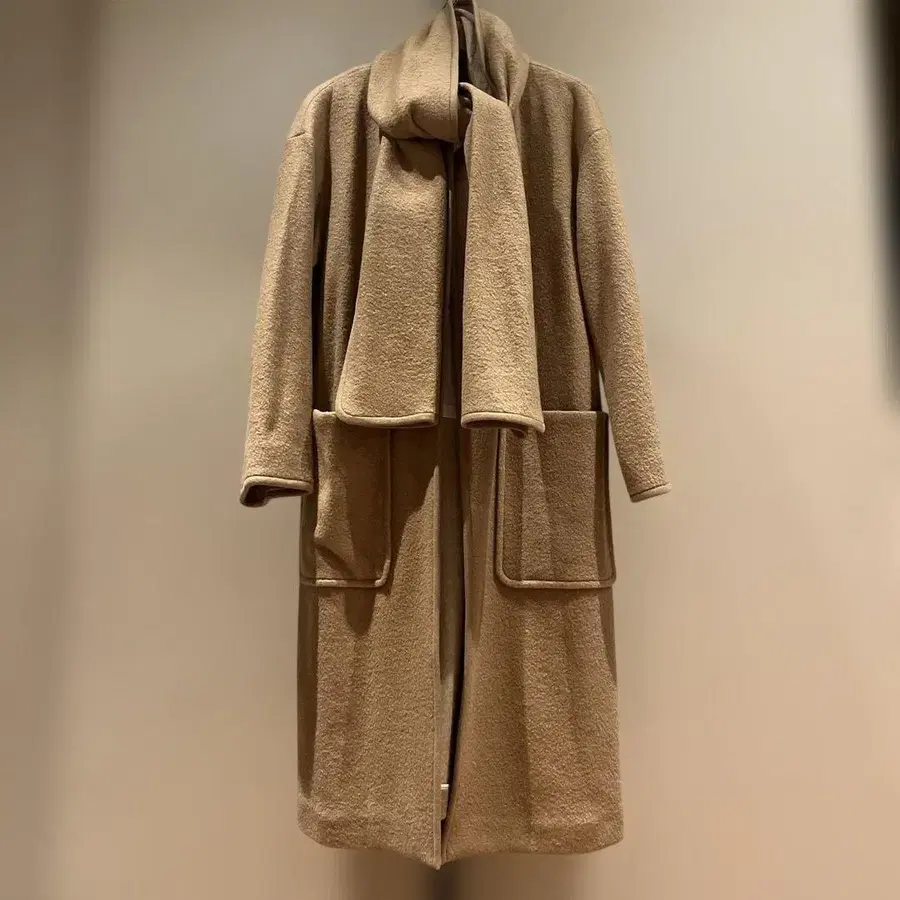 PLAIN PEOPLE 카멜 린넨 롱 코트 머플러 포함