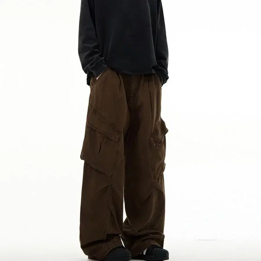 MADWITCH 카고 팬츠 브라운 포켓 부착 카고 팬츠