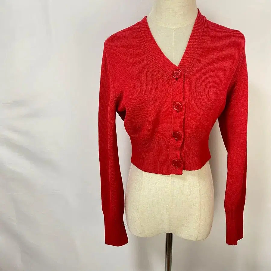 새상품급 ESTNATION 가디건 크롭 기장 V넥 F 사이즈 레드