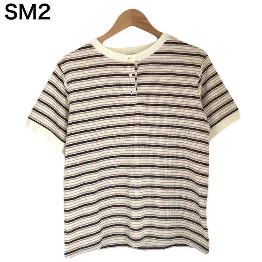 사만사 모스모스 보더 니트 소재 여성용 T셔츠 반팔 둥근넥 패턴 제품