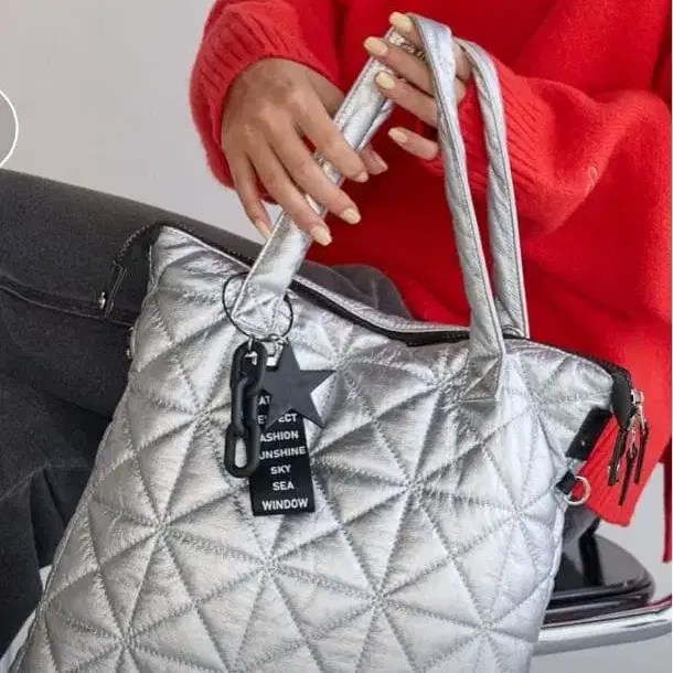 BAYFLOW 실버 퀼팅 토트백