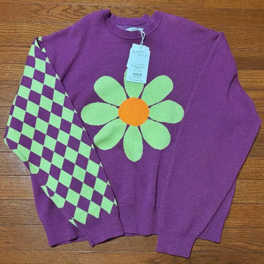 택 포함 모티브 로고 니트 플라워