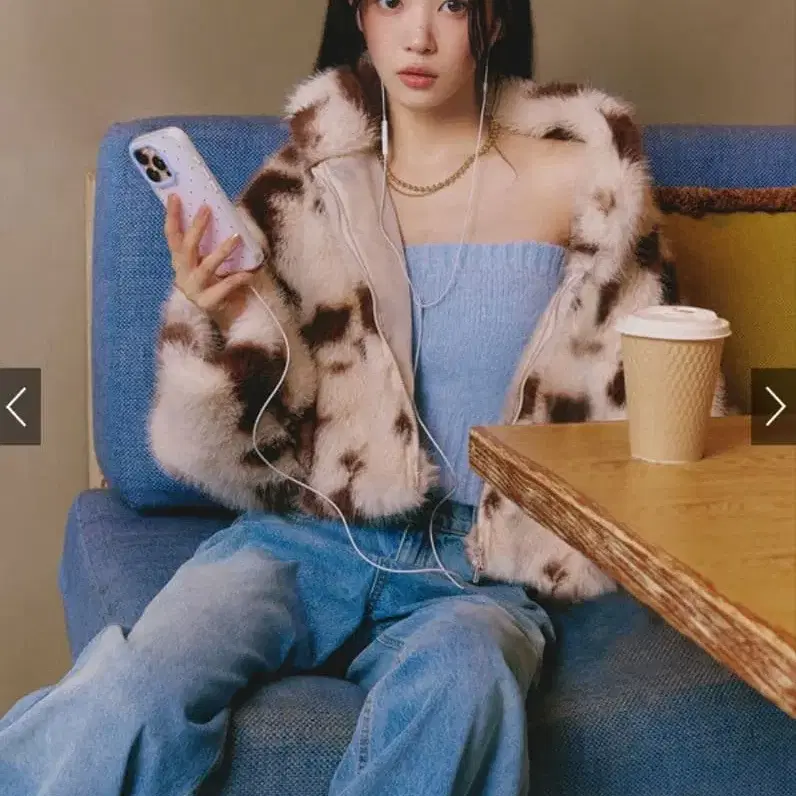 새상품 그레일 ILLIT 카우 패턴 퍼 블루종
