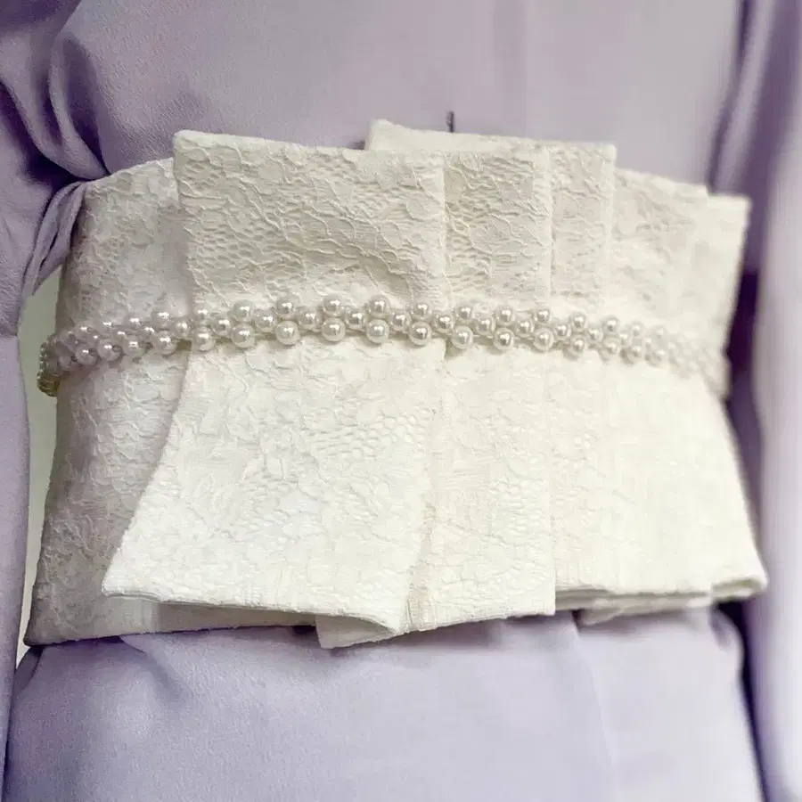 오비 길이가 절반 정도이므로 가볍게 말아 클립이나 핀 등으로 고정하고, 오비 끈이나 벨트로 마무리합니다.