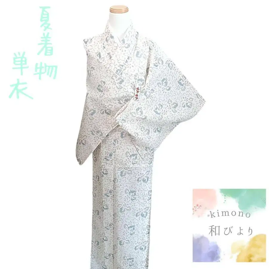 화 25 코몬 단의 여름 꽃 당초 모던 양풍 화이트 기모노