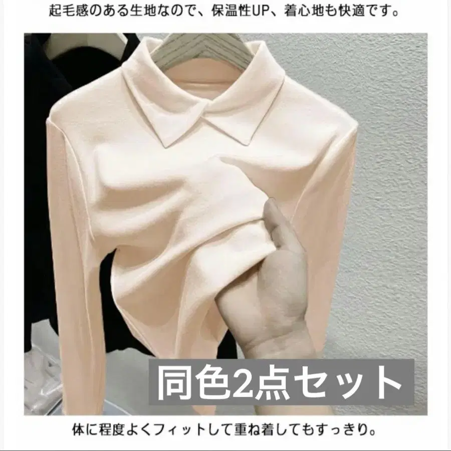 [ 새상품 ] 카라 부착 긴팔 상의 2세트 베이지 M 사이즈